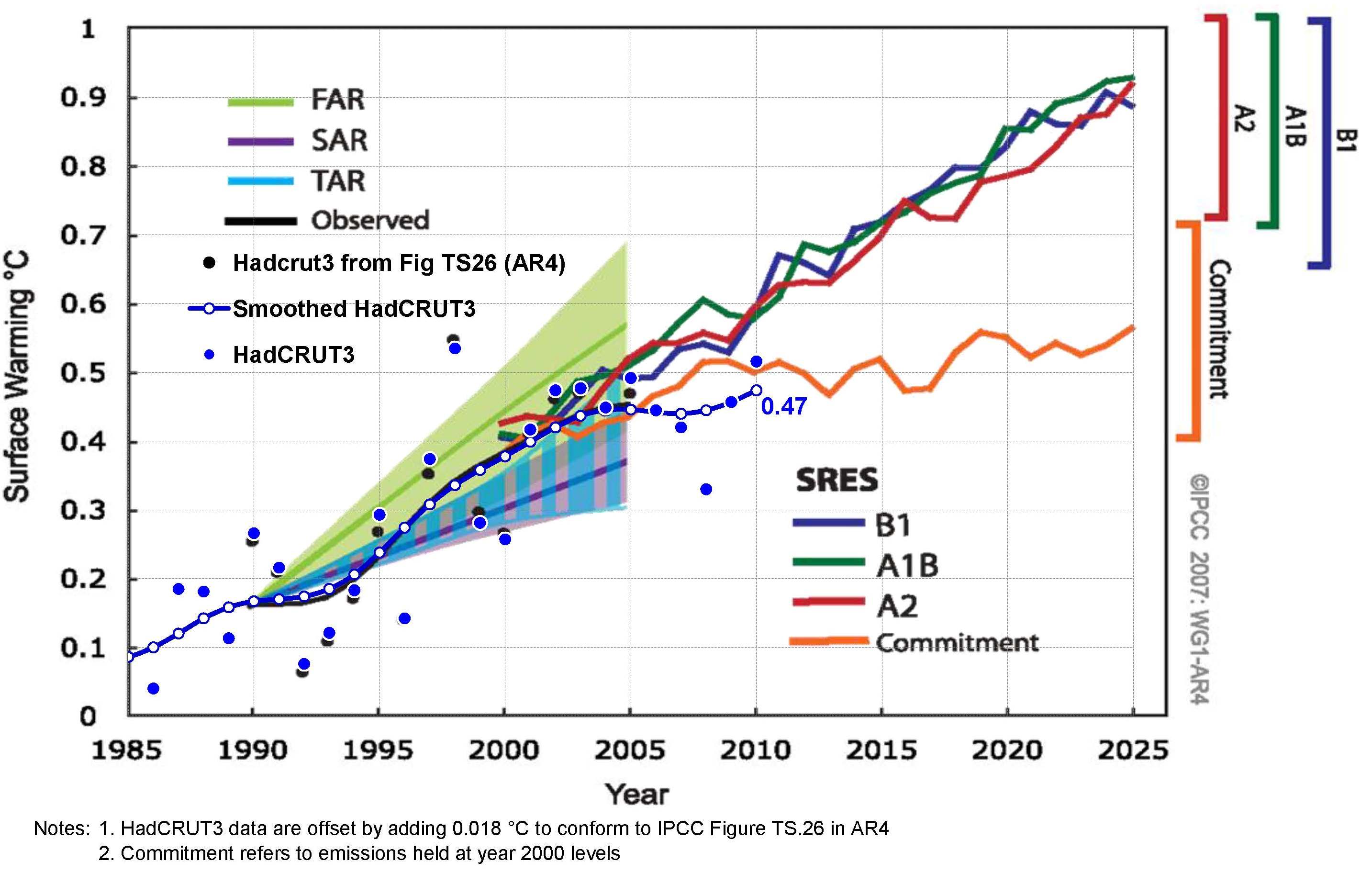The use of the 1850-1900 mean as the basis for the 1 °C rise is unusual because the IPCC reports have always refer to the 1961-1990 mean from HadCRUT for climate projections, e.g., see IPCC AR4 FAQ 3.1, Figure 1. However, we can use other data to determine a real pre-industrial mean as discussed below.